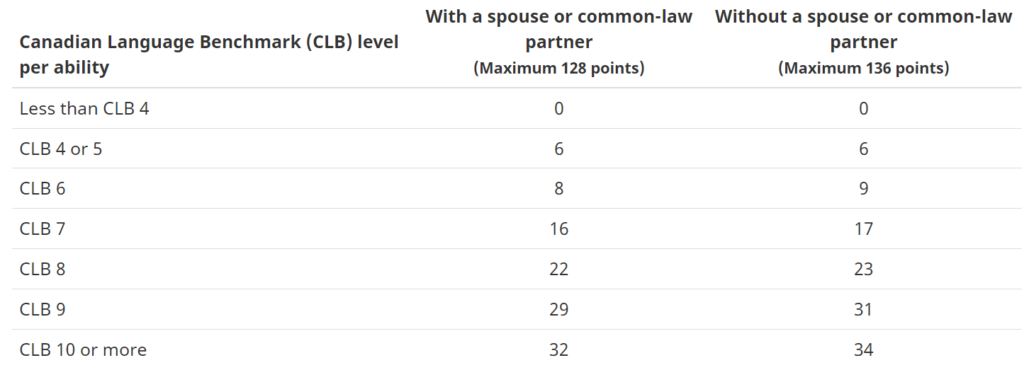 You can get the following points for language skills under the Comprehensive Ranking System (CRS):