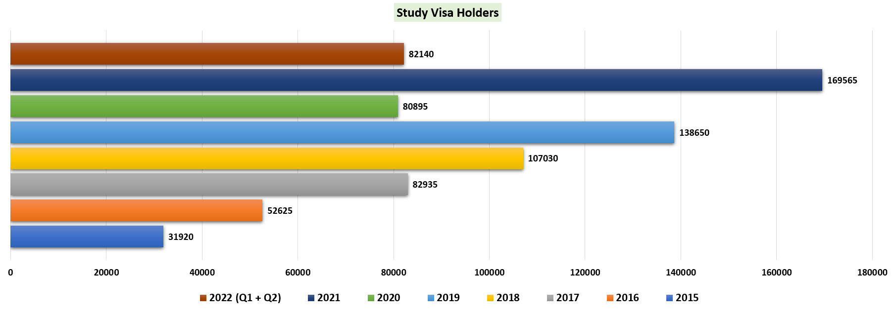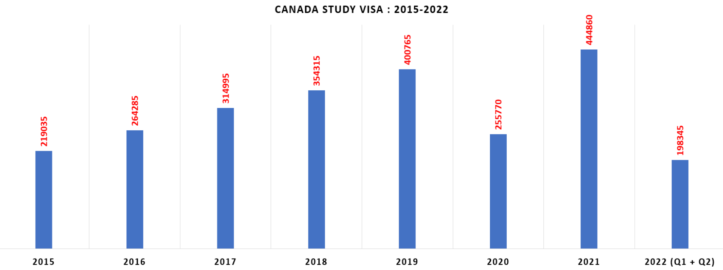 So, we see a boom in the numbers of Indian students holding study visas in Canada in 2021. On the above graph, the 2022 figures include the Q1 and Q2 data. However, upon closer inspection, we see a positive analysis is derived.