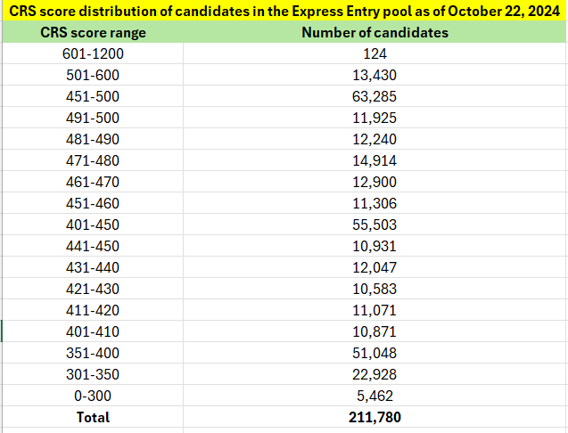 From the above table, the claim we just made is clear. Now, we can expect a higher number of applicants with low CRS score to get selected in November.